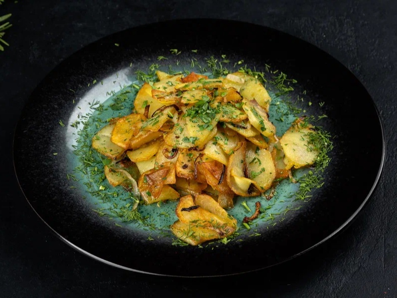 жареный картофель с лучком и зеленью